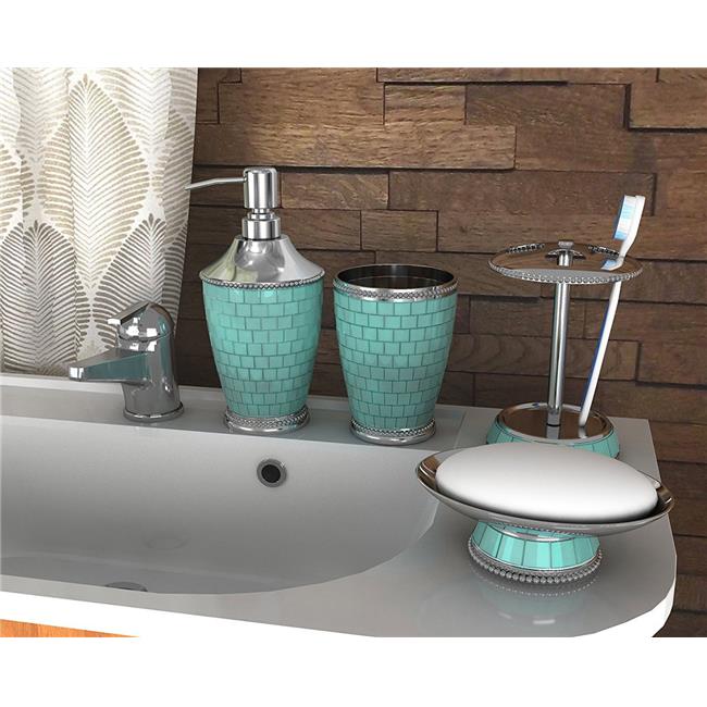 NuSteel IBA-3456-SET4 Soap Dish Tooth Brush Holder Tumbler u0026 Lotion Pump Iceberg Aqua Set 4 Piece