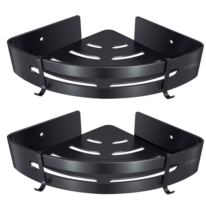 SEVENS No Drilling 2 Tiers Bathroom Corner Shelf Organizer for Shower Kitchen Storage Durable Space Aluminum Shower Caddy with Removable Hooks