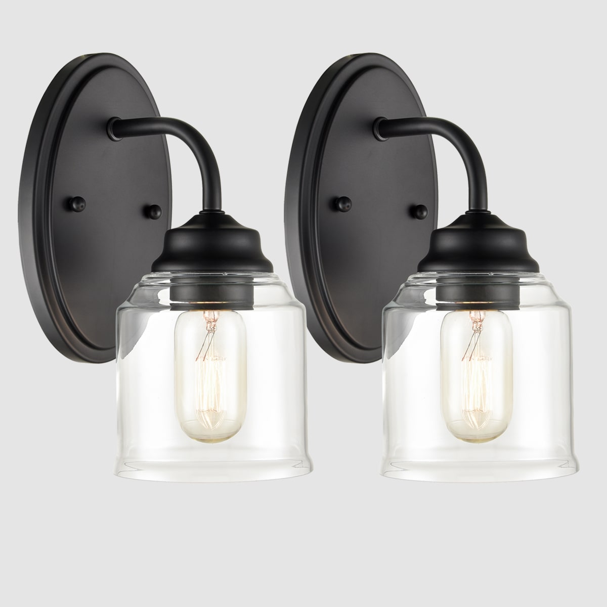 Industrial Clear Glass Wall Sconces Matte Black Bathroom Lights 2-Pack