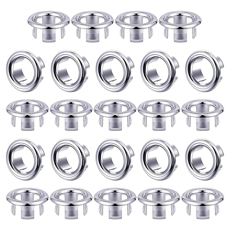 Sink Basin Trim Overflow Cover Insert in Hole Ring Covers Caps, Silver Tone 24pcs