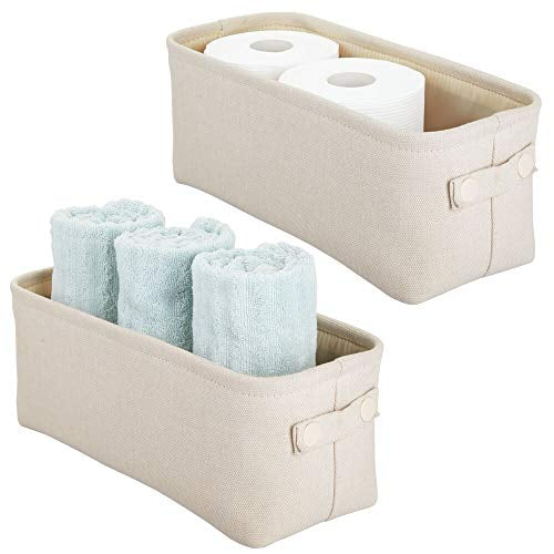 mDesign Soft Cotton Fabric Bathroom Storage Bin with Attached Handles – Organizer for Towels, Toilet Paper Rolls – for Back of Toilet, Cabinets, and