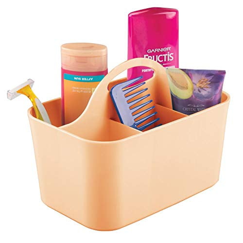 mDesign Plastic Portable Storage Organizer Caddy Tote – Divided Basket Bin with Handle for Bathroom, Dorm Room – Holds Hand Soap, Body Wash, Shampoo,