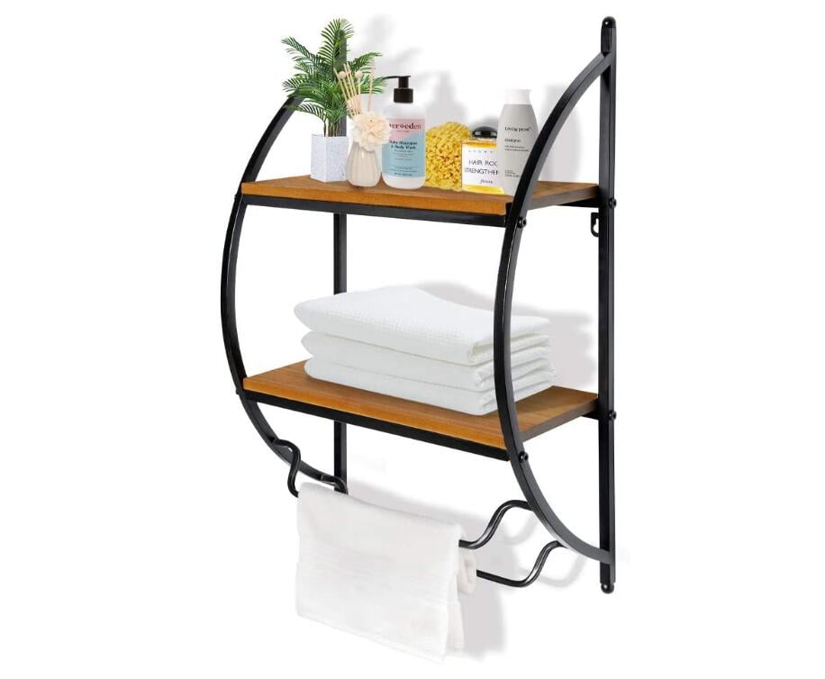 FTVOGUE 2 Tier Bathroom Storage Shelf Organizer with Towel Rods