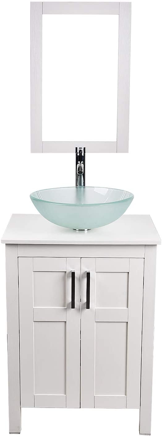 PULUOMIS 24 Inches White Bathroom Vanity with Round Tempered Glass