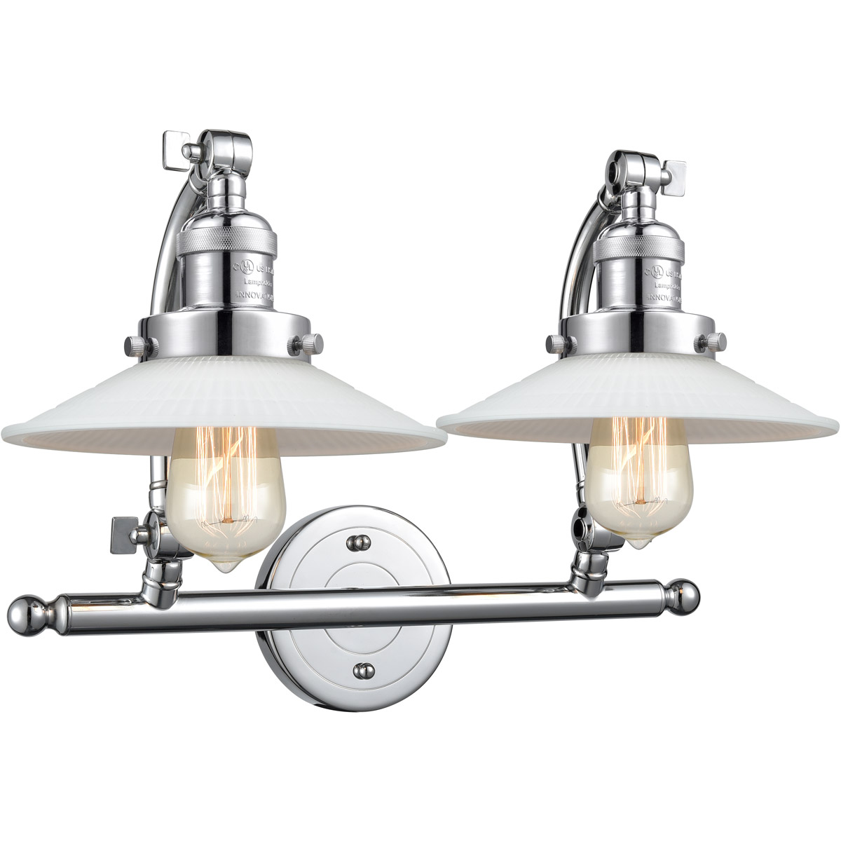 Polished Chrome Tone Bathroom Vanity 18″ Wide White Glass Steel/Cast Brass Medium Base LED 2 Light Fixture