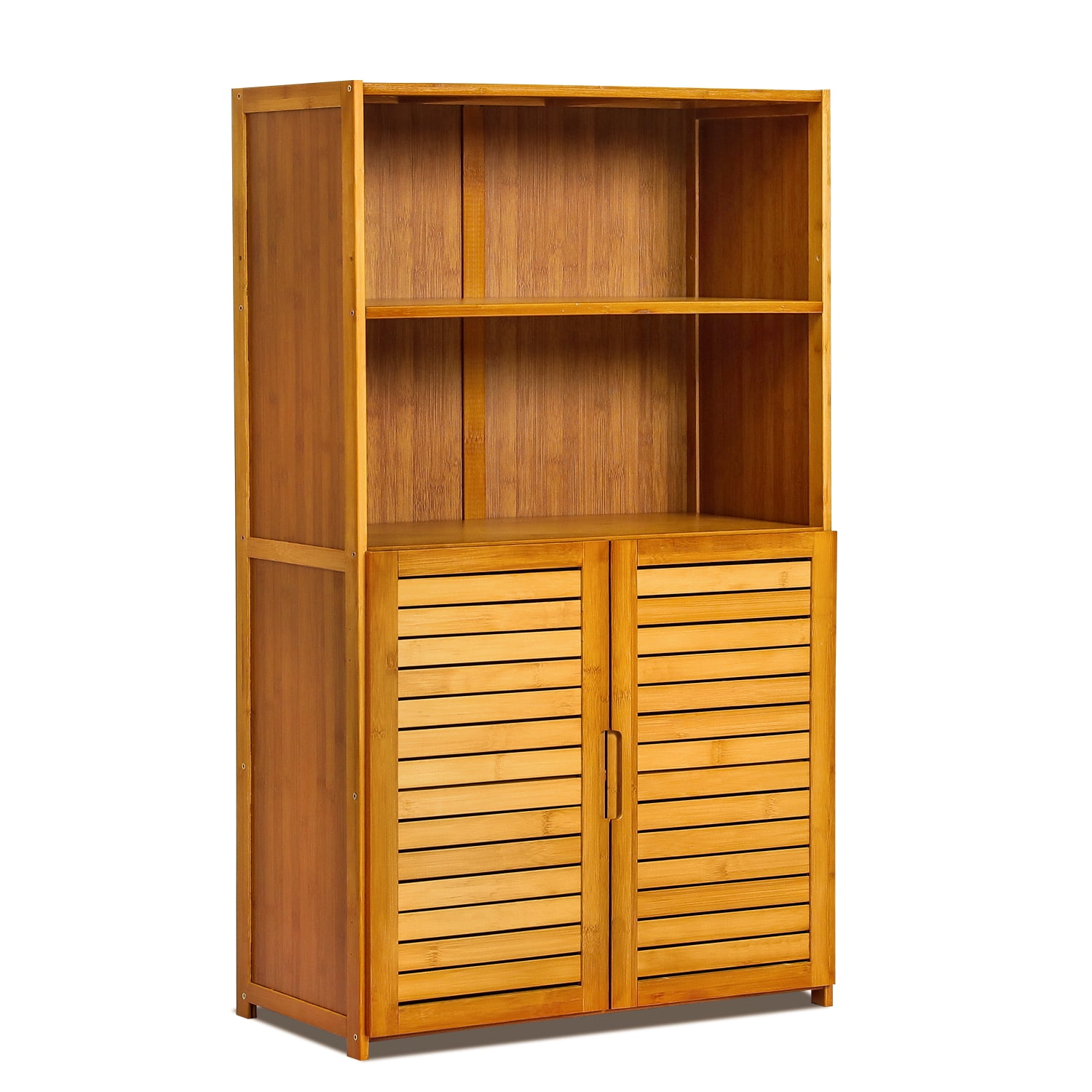 VIAGDO Kitchen Buffet Sideboard, Bamboo Storage Cabinet with 2 Doors and Display Shelves, Buffet Server Cupboard Cabinet, Freestanding Console Table