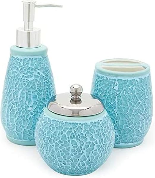 Juvale Teal Bathroom Accessories, Toothbrush Holder, Soap Dispenser, Glass Jar (3 Piece Set)
