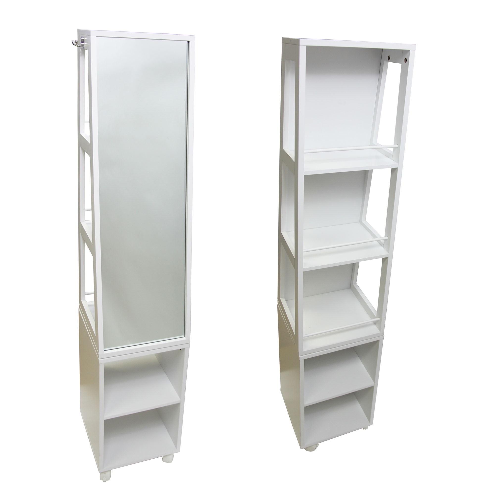 Standing Swivel Storage Tower Cabinet Organizer Linen Full Length Mirror 6 Shelves White