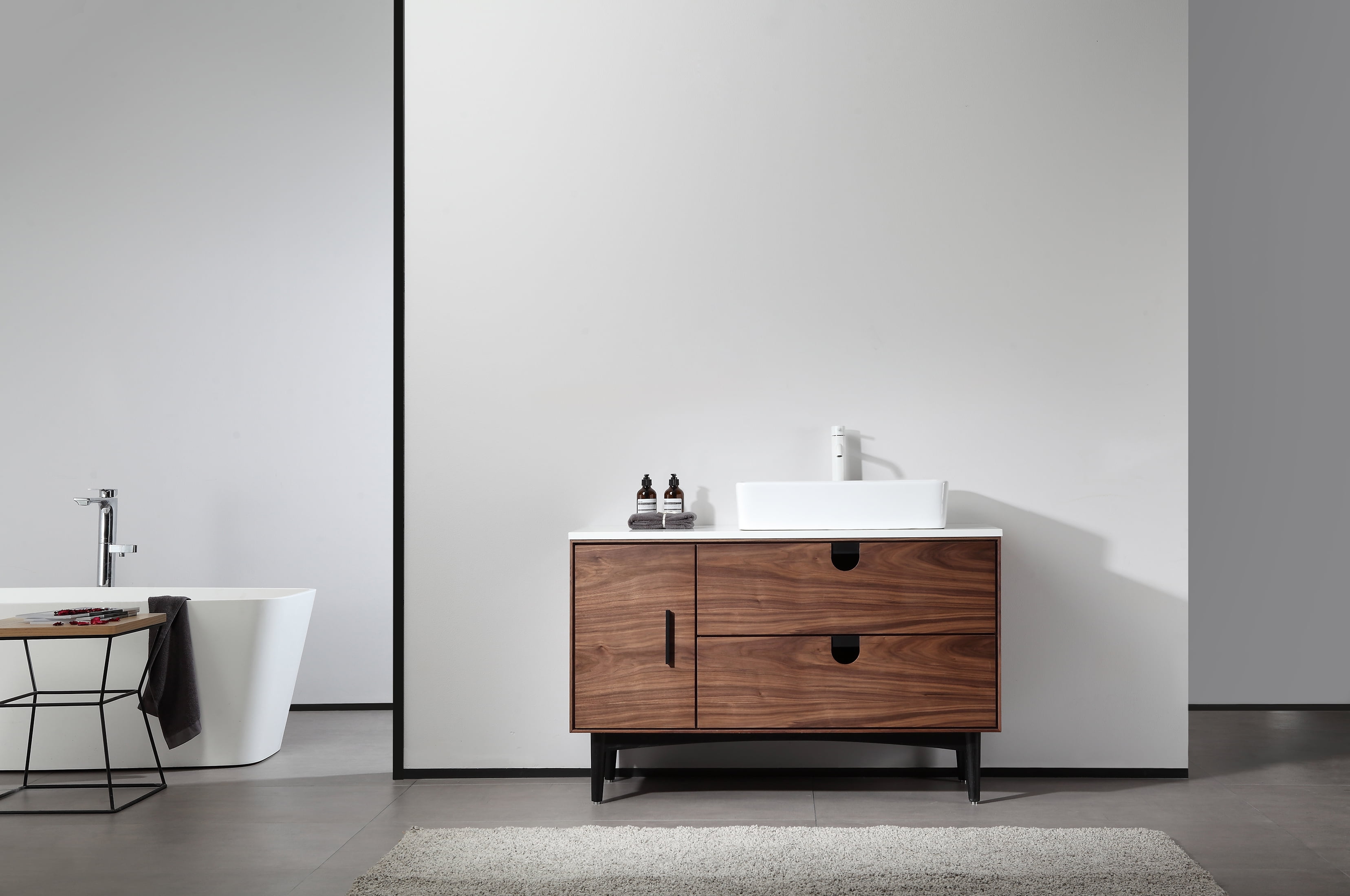 KARTON REPUBLIC PORTREE 48u201d WALNUT MID-CENTURY FREE STANDING BATHROOM VANITY